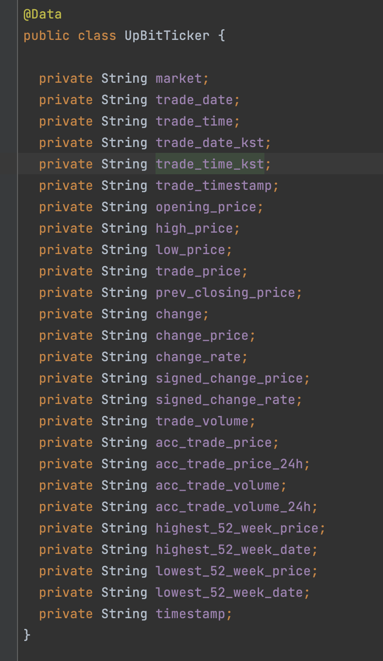 4. DTO 생성 - api 호출 후 리턴 받을 데이터를 매핑할 클래스 편의상 모두 String으로 처리