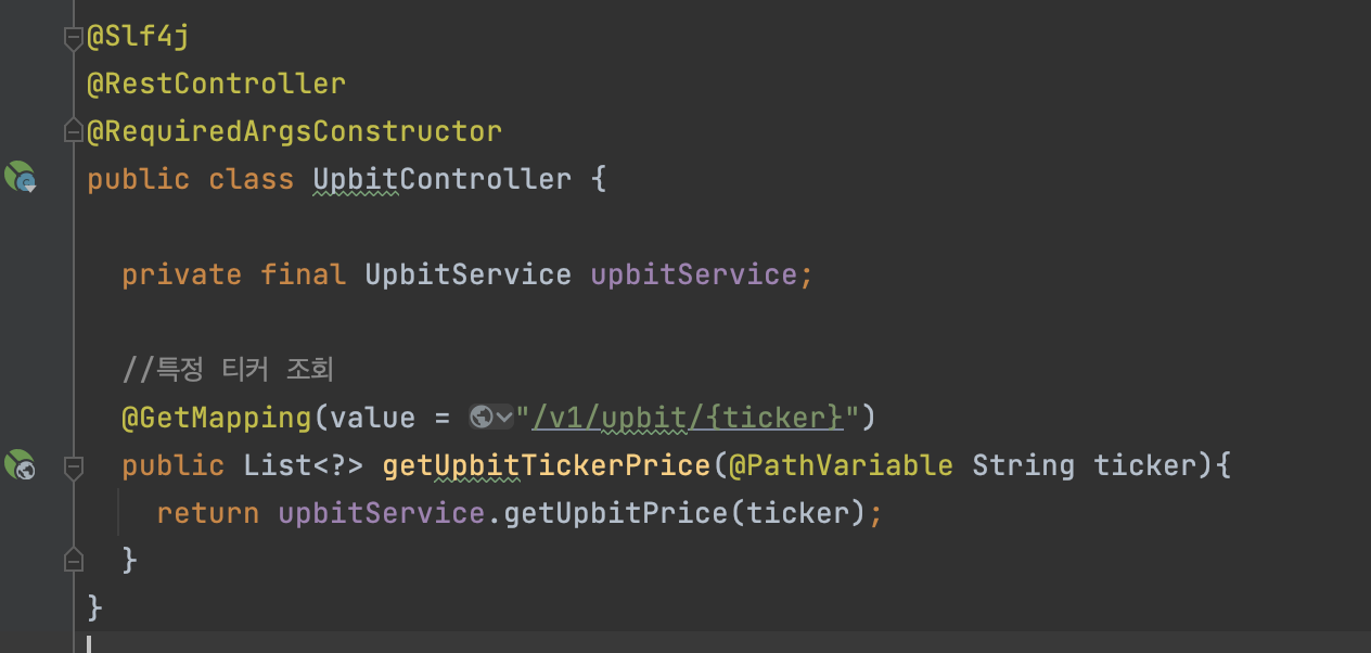 -> http://localhost:8080/v1/upbit/KRW-BTC (비트코인 한국 시세)