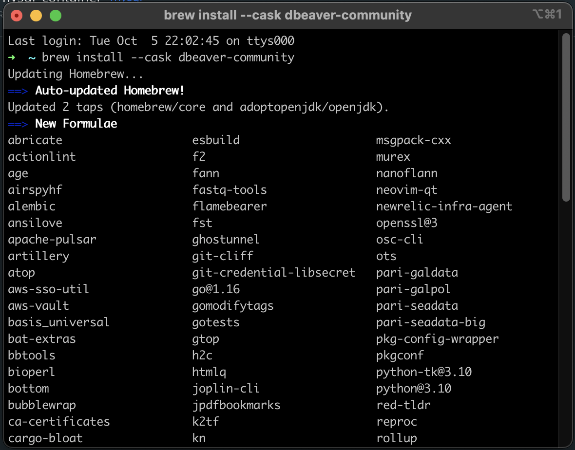 $ brew install --cask dbeaver-community