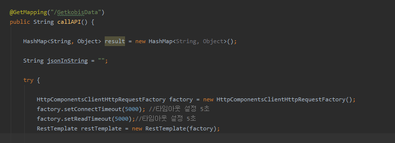 factory.setReadTimeout(5000);//타임아웃 설정 5초