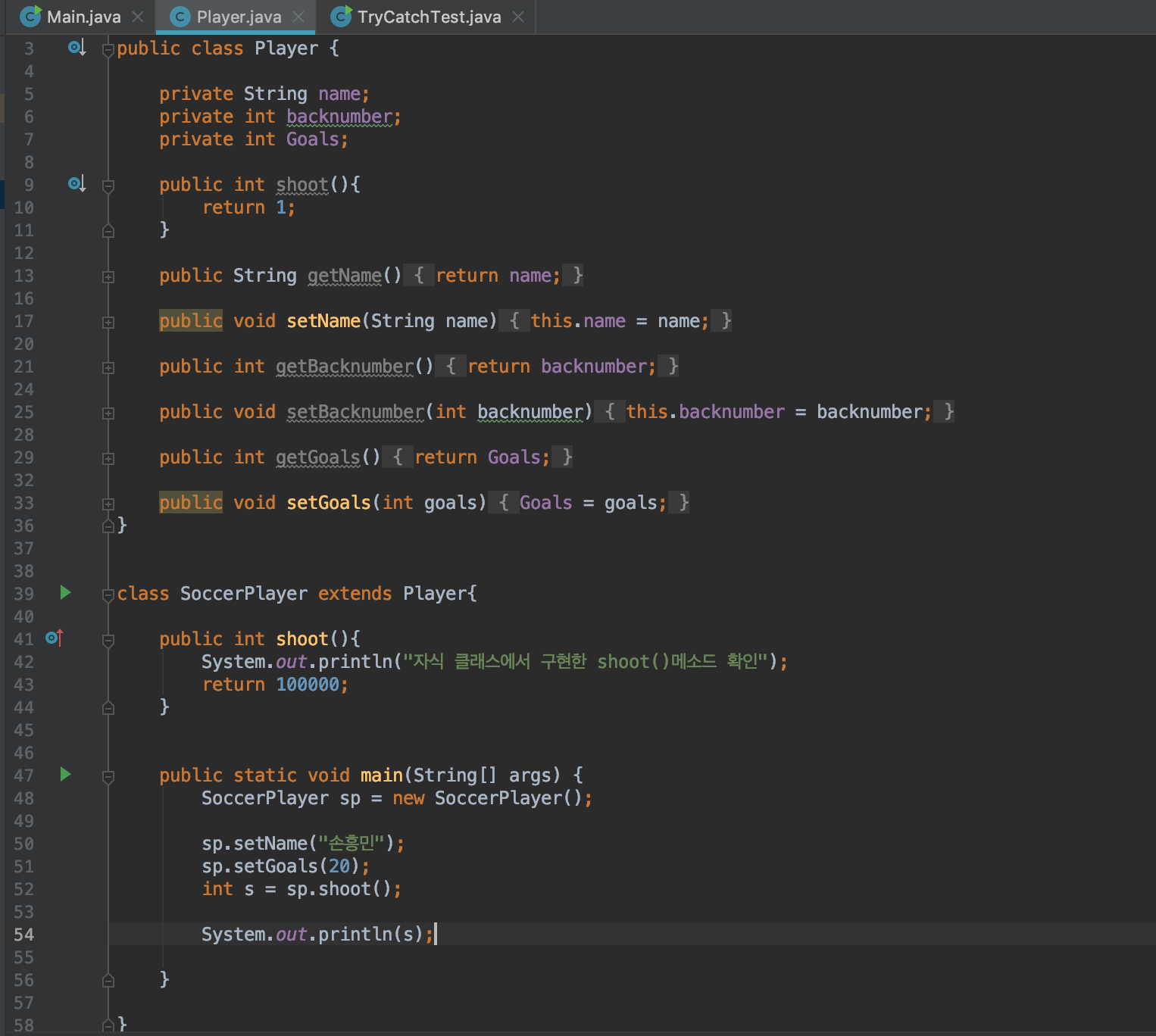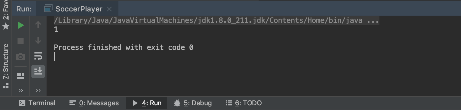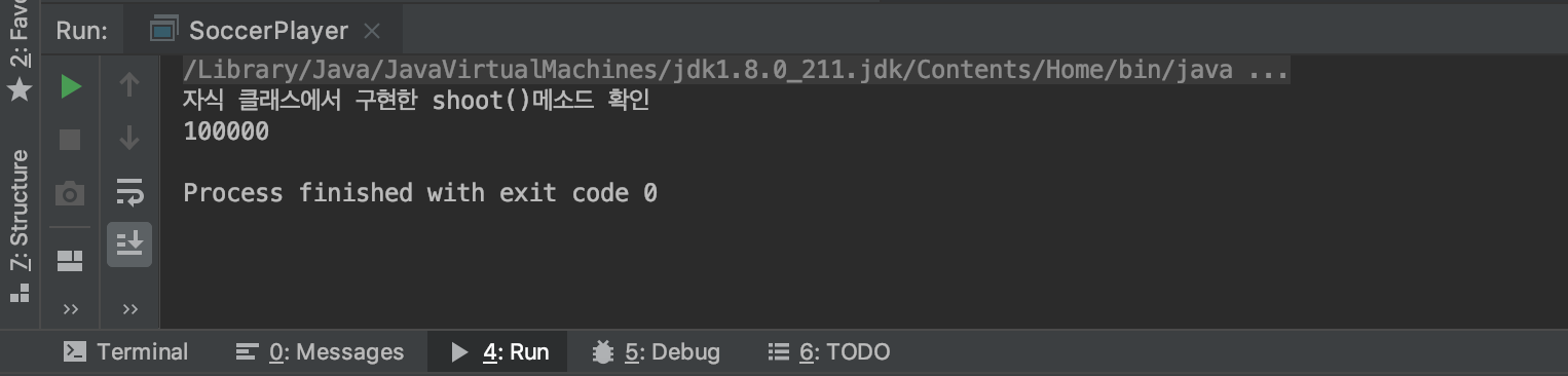 실행을 해보면, 아까와 다르게 1이 출력되는것이 아닌, SoccerPlayer에서 정의한 값이 출력됩니다.