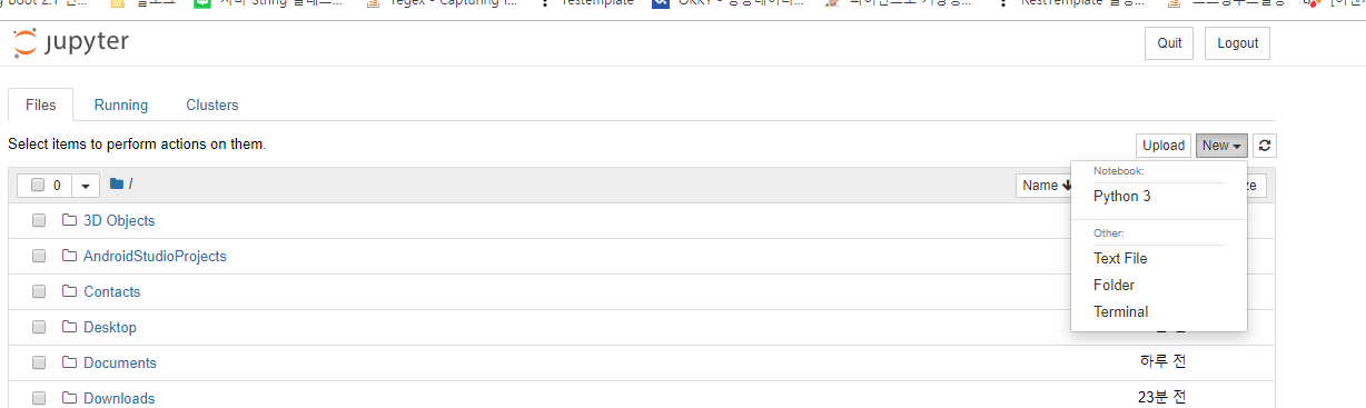 우측 new버튼을 눌러 python3을 선택해줍니다.