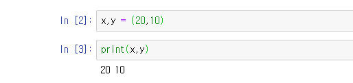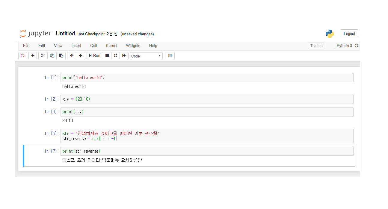 아래와 같이 2번 셀에서 선언한 변수의 값을 다음 셀에서 출력 할 수 있습니다.