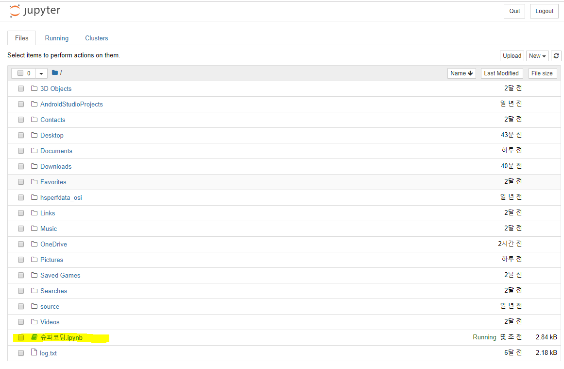 아래와 같이 .ipynb 확장자로 파일이 하나 생성된 것을 확인 할 수 있습니다.