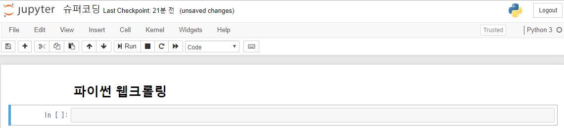 주피터 노트북 새파일을 하나 열어줍니다.