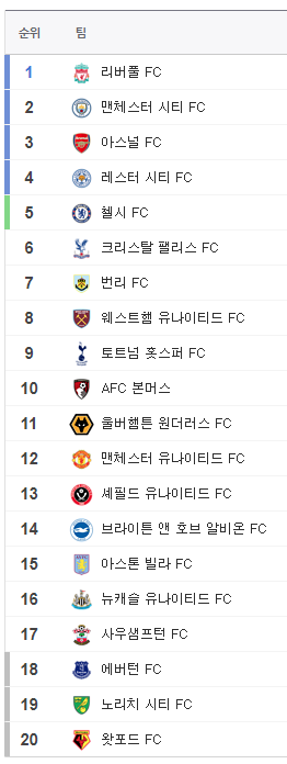 프리미어리그 전체 팀 순위 정보를 크롤링해보도록 하겠습니다.