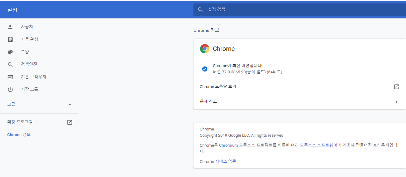 크롬 버전 확인은 아래 참고 부탁드립니다.
