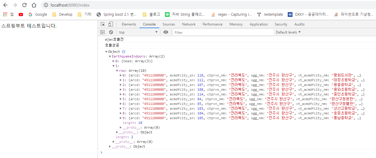 Console.log()로 찍어 보면 정상적으로 ajax호출이 완료된 것을 알 수 있습니다.