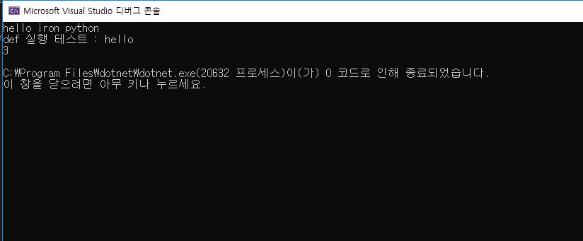 Console.WriteLine("def 실행 테스트 : " + getPythonFuncResult());