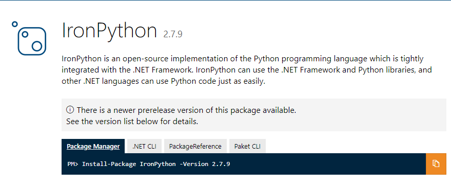 Install-Package IronPython -Version 2.7.9