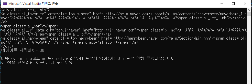 실제 실행 해보면 아래와 같이 정상적으로 ironpython으로 크롤링 스크립트를 실행 한 것을 확인 할 수 있습니다.