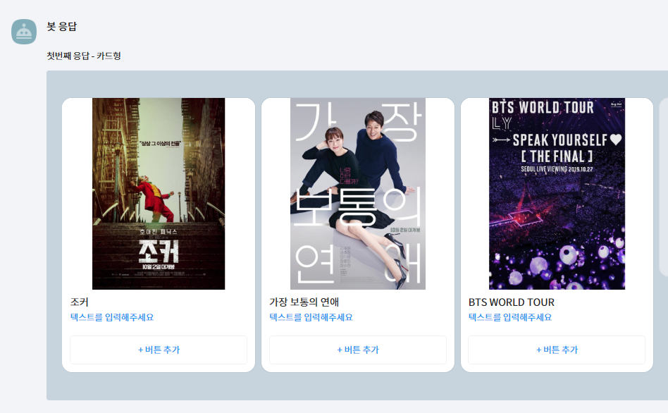 봇 응답에 카드형을 선택한 후 포스터이미지를 업로드 해줍니다.