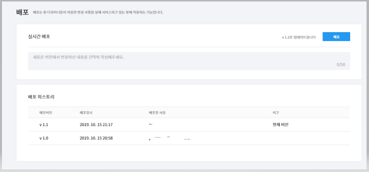 배포를 할때 마다 아래와 같이 배포 히스토리가 남게 됩니다.