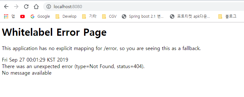 @브라우저에 http://localhost:8080을 입력해 아래 페이지가 뜨면 정상적으로 빌드가 된것입니다.