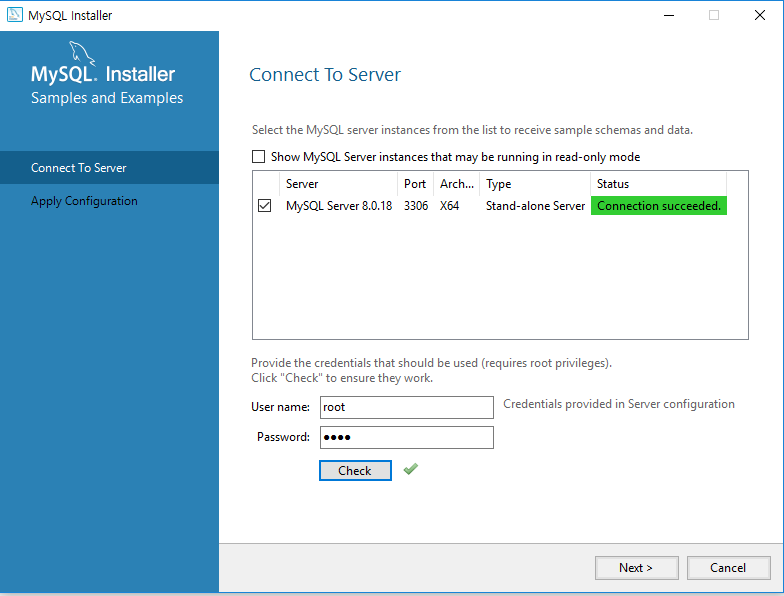 Status가 Connection succeeded가 나오면 next를 눌러줍니다.